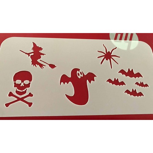 This stencil is made from 190 micron mylar so its durable and reusable. The sizes of the whole stencil are 200mm x 100mm. As you can see there are a few designs on it.